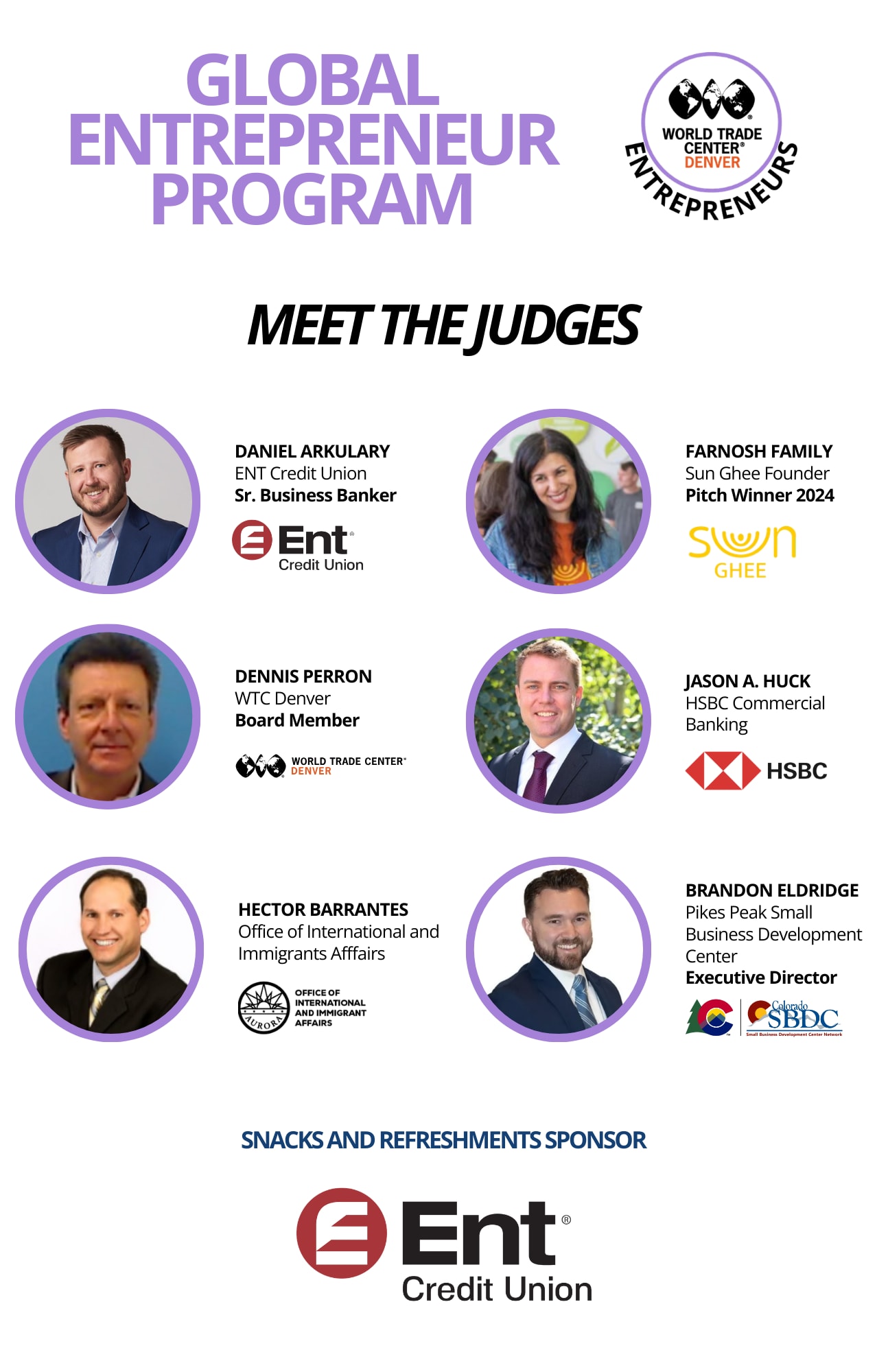 Join us in the audience as nine finalists from our Global Entrepreneur Program take the stage to pitch their businesses. Cast your vote for the People’s Choice Award, sponsored by the City of Aurora Office of International Trade & Immigrants Affairs.