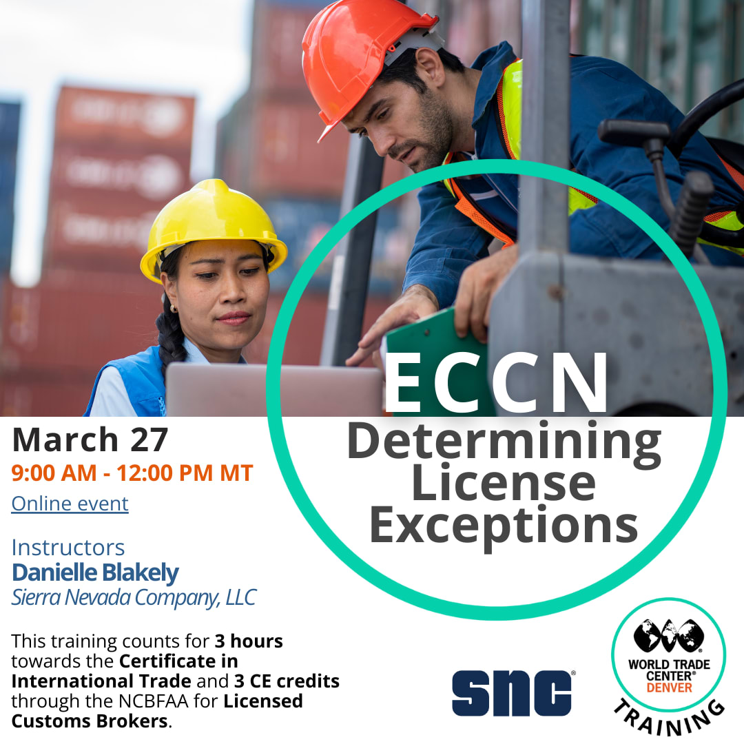 This training is a follow-on from our successful ‘Understanding and Using ECCNs’ course (Nov 2024) and presumes that participants understand how to determine their ECCN. This course will focus on determining export licensing requirements, whether a license exception may be available, and understanding whether any General Prohibitions apply to a transaction. Participants should come to this class with at least one pre-determined ECCN which they will reference during class exercises. Participants will learn how to navigate the complexities of export regulations to ensure compliance with the Export Administration Regulations (EAR). Through practical examples and interactive discussions, attendees will gain the necessary skills to accurately identify understand when a license or exception may be required for their export, mitigate risks of non-compliance, and support their organization's global trade operations effectively.
